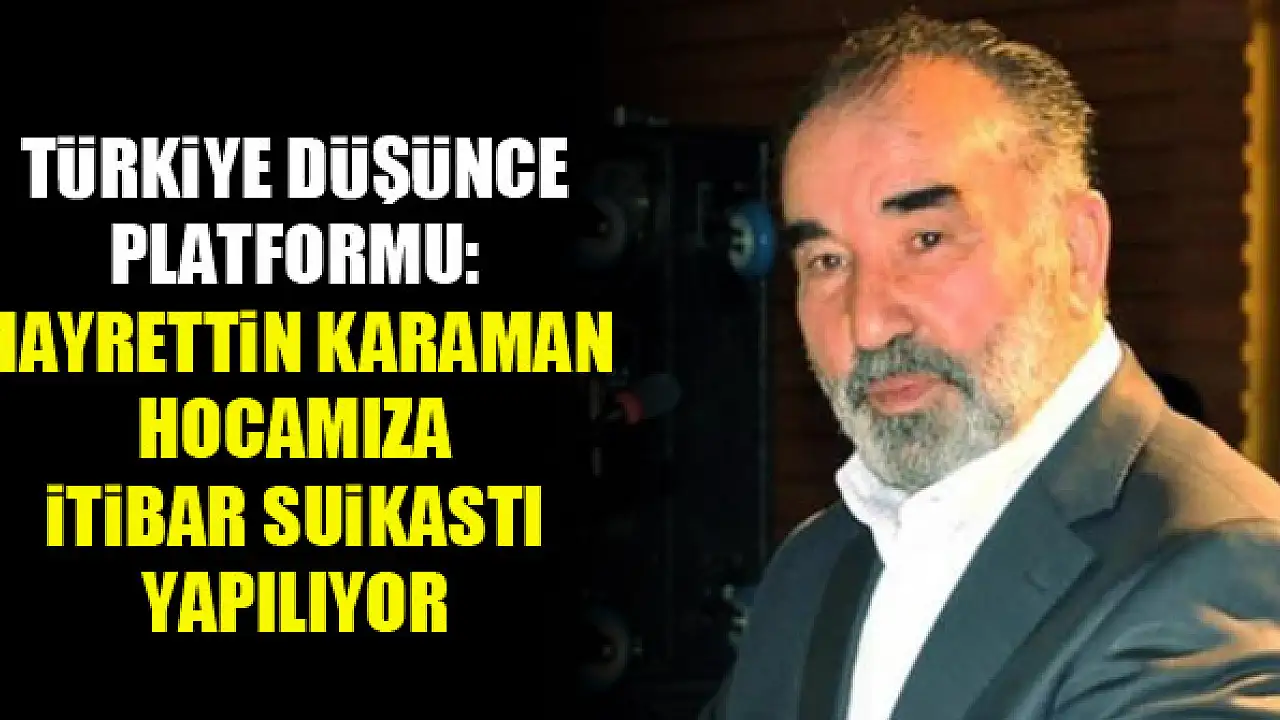 Prof. Dr. Hayrettin Karaman'ın Kur'an ve sünnet ışığında İslam'ı aktarmasının bir kısım medya ve sözde ilahiyatçılar tarafından ''halkı kin ve nefrete teşvik etmek'' şeklinde lanse edilmesine Türkiye Düşünce Platformu'ndan tepki geldi.