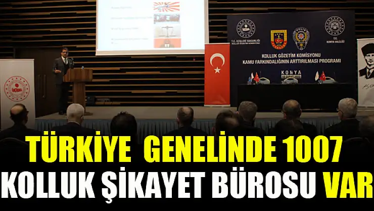 İçişleri Bakanlığı Hukuk Hizmetleri Genel Müdürü Harun Sarıfakıoğulları, Konya Valiliğince Selçuklu Kongre Merkezi'nde gerçekleştirilen programda yaptığı konuşmada, ülke genelinde 1007 kolluk şikayet bürosunun faaliyette olduğunu bildirdi.