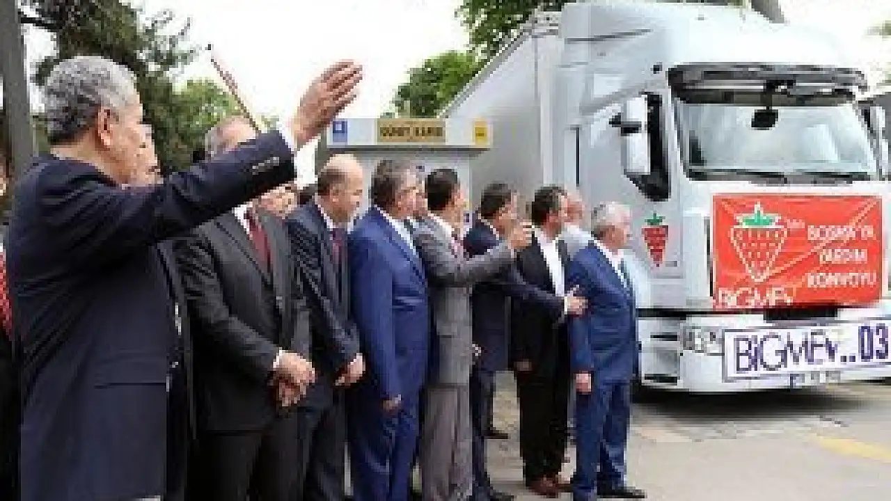 Tırların yola çıkarılmasıyla sona eren törene, Bursa Valisi Münir Karaloğlu, Büyükşehir Belediye Başkanı Recep Altepe, Osmangazi Belediye Başkanı Mustafa Dündar, AK Parti İl Başkanı Cemalettin Torun ile bazı sivil toplum kuruluşlarının temsilcileri katıldı.