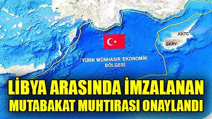 Türkiye ile Libya arasında imzalanan 'Deniz Yetki Alanlarının Sınırlandırılmasına İlişkin Mutabakat Muhtırası' onaylandı.