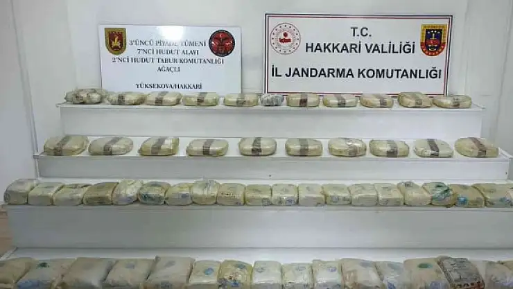 Hakkari Valiliğinde yapılan açıklamada, "İl Jandarma Komutanlığı görevlilerimiz tarafından 3. Piyade Tümen Komutanlığı sınır birlikleri ile müşterek olarak "Uyuşturucu veya Uyarıcı Madde İmal ve Ticareti" suçunu önlemeye yönelik yürütülen çalışmalar çerçevesinde 9 Temmuz 2022 günü Yüksekova ilçesi Esendere Beldesi Türkiye-İran sınır hattında icra edilen operasyon neticesinde; 2 çuval içerisinde 68 kilogram eroin maddesi ile 1 kilogram afyon sakızı ele geçirilmiştir. Bölgede operasyonlar devam etmektedir" denildi.