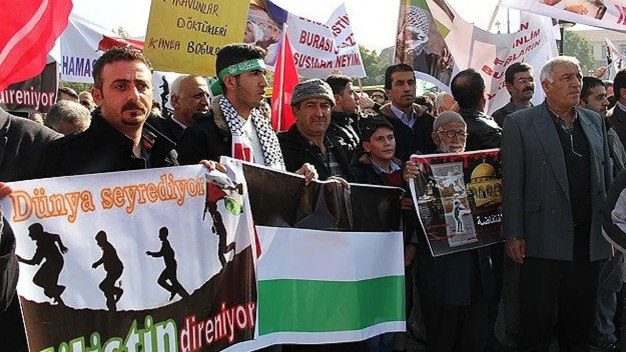 Cumhuriyet Meydanı'nda toplanan Özgür-Der Sivas Şubesi üyeleri, "Yaşasın Filistin direnişimiz", "Korsan İsrail, Filistin'den defol" "Kaholsun İsrail" pankartları açarak, "Kahrolsun İsrail" sloganları attı.