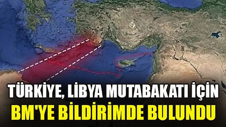 Türkiye, Libya ile imzalanan Deniz Yetki Alanlarının Sınırlandırılmasına İlişkin Mutabakat Muhtırasının tescili için Birleşmiş Milletler'e (BM) bildirimde bulundu.