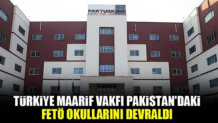 Türkiye Maarif Vakfı'ndan (TMV) yapılan yazılı açıklamaya göre, Pakistan Yüksek Mahkemesinin verdiği talimatla ülkede terör örgütü ilan edilen FETÖ'ye ait Pak-Türk Çağ Eğitim Vakfı okullarının TMV'ye devri gerçekleşti.