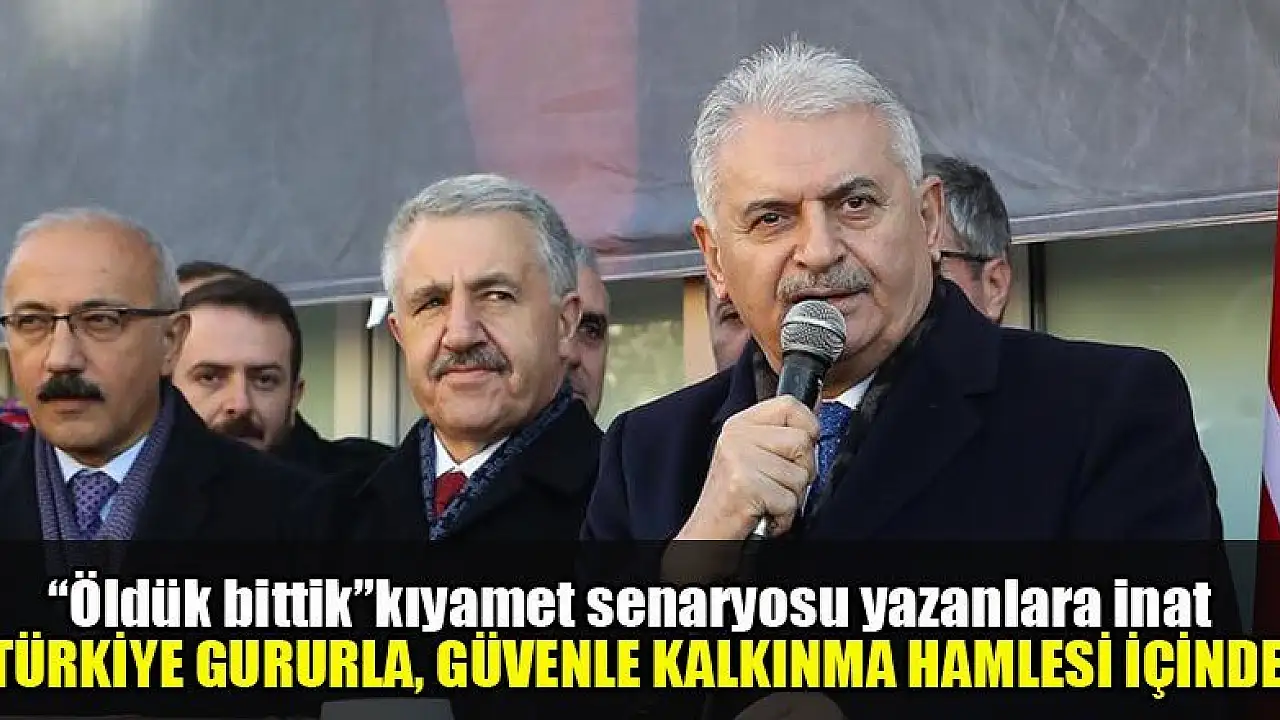 TBMM Başkanı Yıldırım, 'Dünyaya, dosta düşmana mesaj veriyoruz. 'Öldük bittik', kıyamet senaryosu yazanlara inat Türkiye, gururla, güvenle nasıl bir kalkınma hamlesi içinde olduğunu herkese gösteriyor.' dedi.