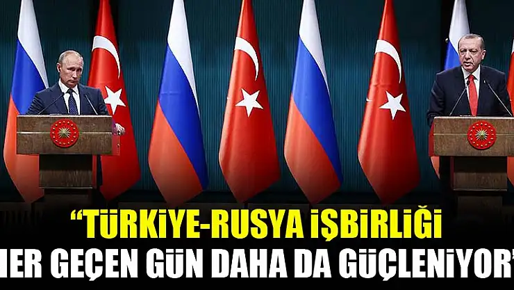 Cumhurbaşkanı Erdoğan, 'Türkiye-Rusya işbirliği her geçen gün daha da güçleniyor. Siyasi düzeyde ahenkli bir çalışma ortamımız var.' dedi.