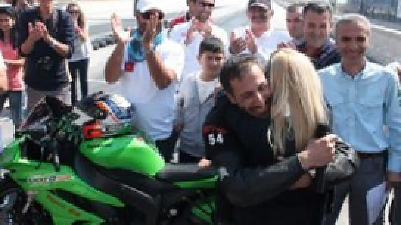 Konya'da yapılan 6. ayak Türkiye Motodrag Şampiyonası'nda 600 CC klasmanında Türkiye şampiyonu olan Ziyattin Göktepe, sevgilisine pistte evlilik teklif etti.