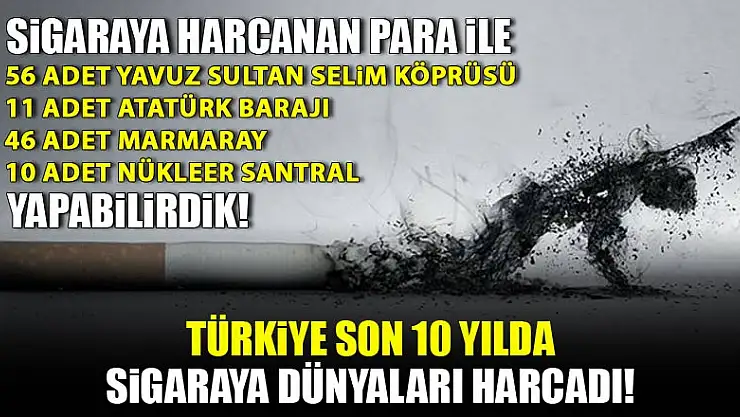 Türkiye'de 2006-2015 yılları arasında sigaraya harcanan para dudak uçuklattı. 2006 2015 yılları arasında 256,7 milyar lira havaya uçarken iç piyasada bir trilyon adedin üzerinde sigara satışı gerçekleşti.