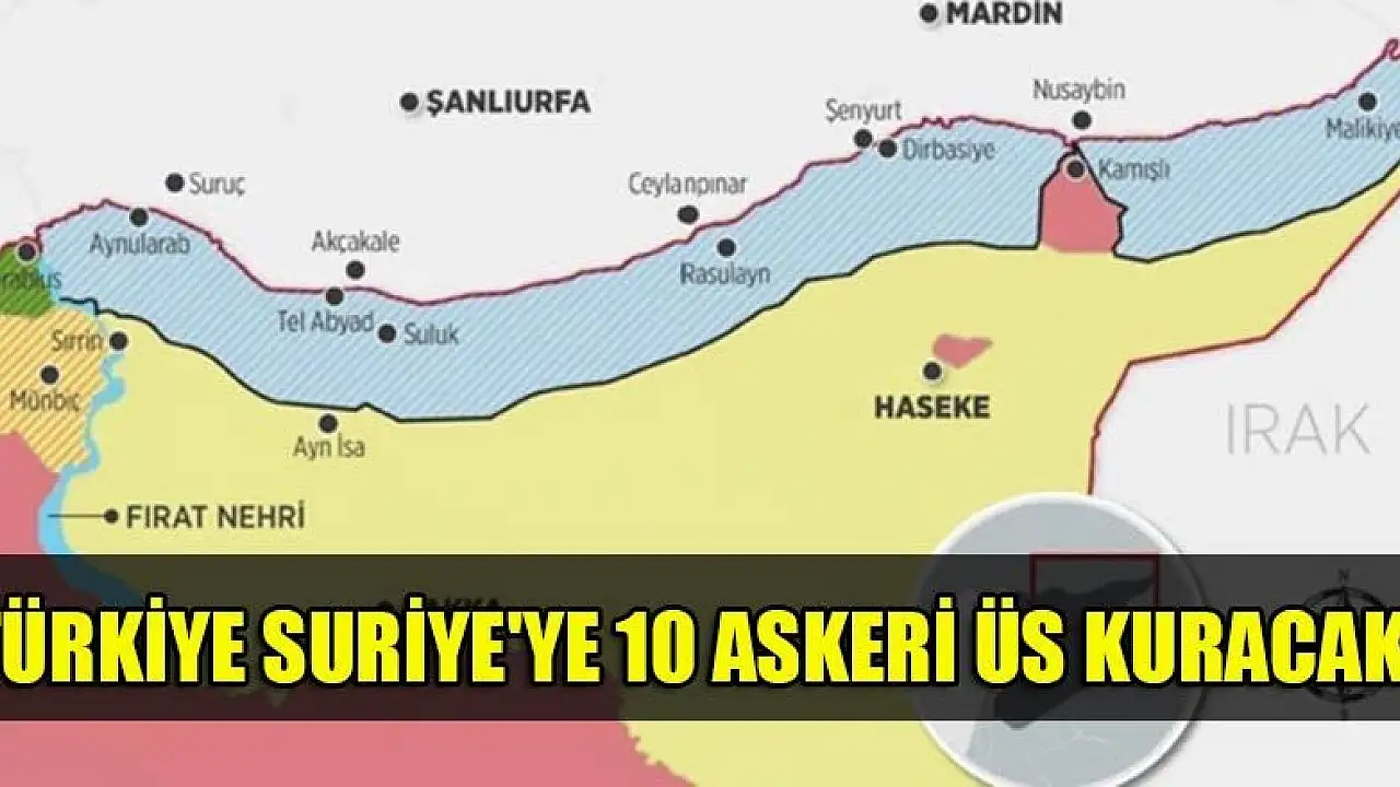 Türkiye ile ABD arasındaki görüşmelerin olumlu sonuçlanması ve Güvenli Bölge´nin tesis edilmesinin ardından Türk Silahlı Kuvvetleri tarafından Suriye´nin kuzeyinde ilk etapta 10 noktaya üs bölgesi kurulacağı kaydedildi. Askeri yetkililer, ilk etapta Fırat´ın doğu bölgesinde kalan Suriye´nin Ayn-el Arap, Telabyad, Rasulayn, Kamışlı, Derbesiye, Amude bölgeleri başta olmak üzere 10 noktada üs kurup, zırhlı araçlarla burada gözlem noktaları oluşturmasının planlandığını bildirdi. TSK´nın ilerleyen süreçte ihtiyaç duyulan bölgelerde yeni üs noktaları kuracağı ve Güvenli Bölge´deki etki alanını artırarak sivillerin geri dönüşünün desteklenmesine de katkı sağlayacağı belirtildi.