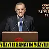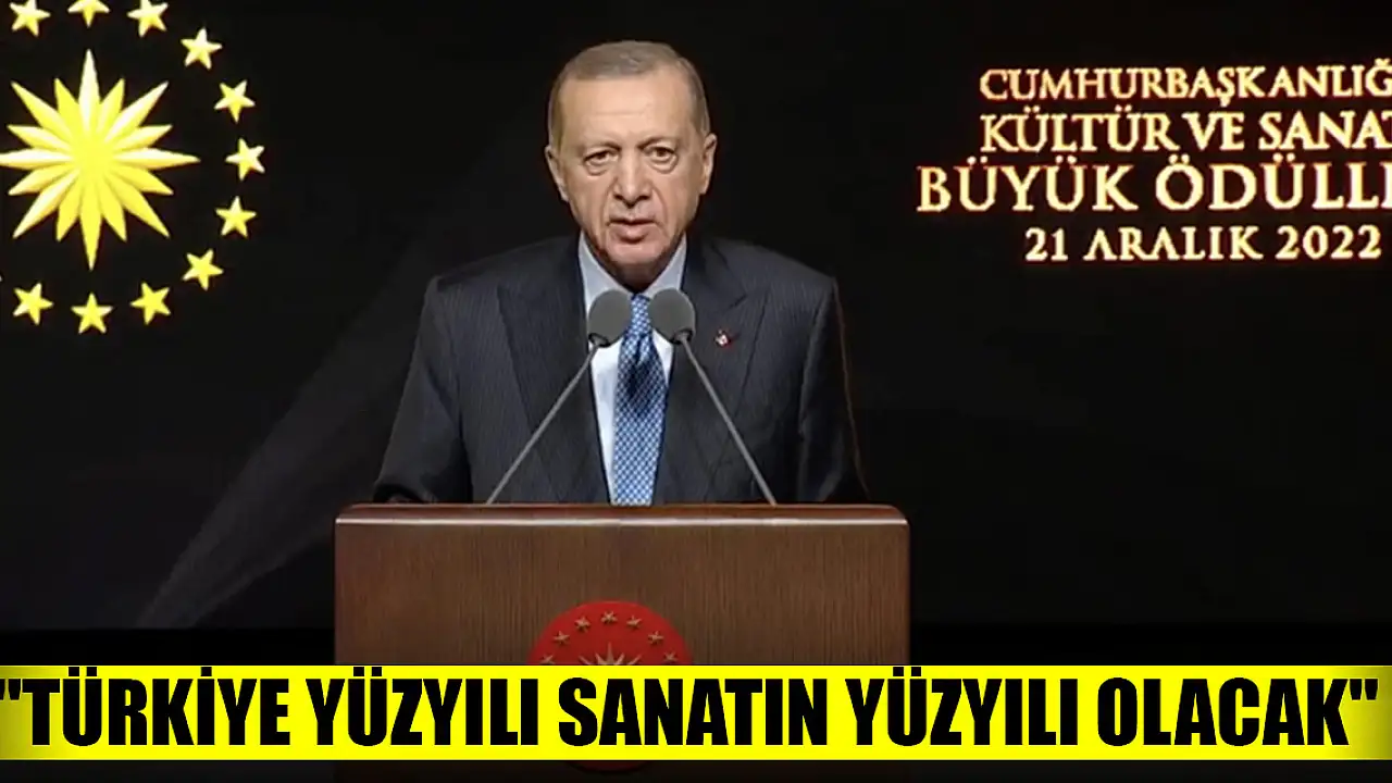 Cumhurbaşkanı Recep Tayyip Erdoğan, Beştepe Millet Kültür ve Kongre Merkezi'nde düzenlenen Cumhurbaşkanlığı Kültür ve Sanat Büyük Ödülleri Töreni'nde konuştu. Erdoğan 'Türkiye Yüzyılı sanatın ve sanatçılarımızın yüzyılı olacak' şeklinde konuştu.