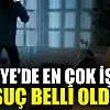 İstanbul ve Ankara'nın da aralarında bulunduğu 19 ilde ilk sırayı hırsızlık, yağma ve mala zarar vermeyi de kapsayan "mal varlığına karşı işlenen suçlar" aldı.