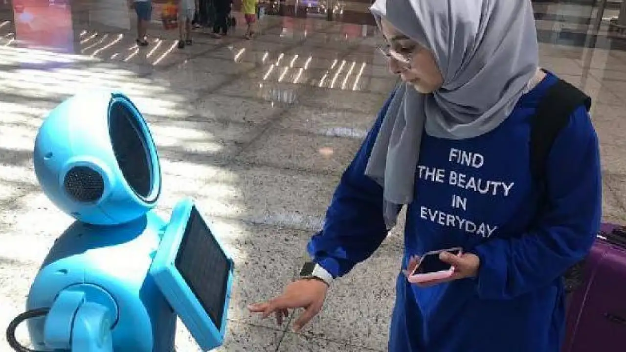 İstanbul Havalimanı'nda bugün itibariyle 2 adet danışma robotu yolculara asistanlık yapmaya başladı.