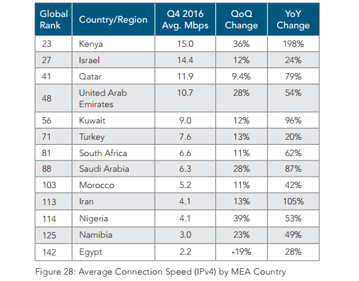 Küresel çapta internet hızı analizi yapan Akamai Technologies, 2016'nın son çeyreğine dair verileri açıkladı. Rapora göre dünya çapında internet hızı, bir önceki çeyreğe göre yüzde 12 artış göstererek ortalama 7.0 Mbpsseviyesine ulaştı. Yıl bazlı hız artışı ise yüzde 26 olarak kaydedildi.