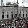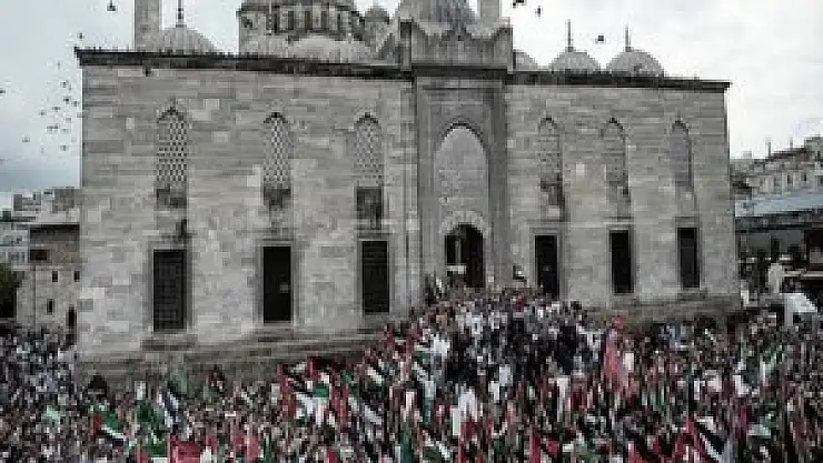 Eminönü Yeni Cami önünde toplanan bir grup, İsrail'in Gazze'ye yönelik saldırılarını protesto etti.