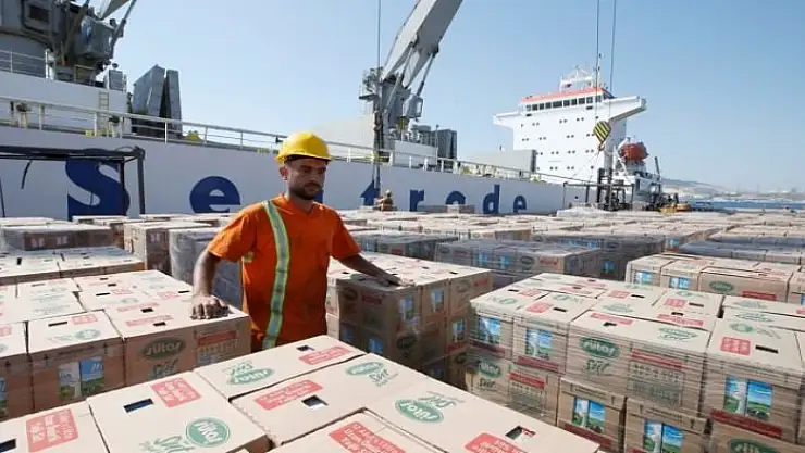 Türkiye'den Katar'a gıda götürecek ikinci geminin yüklenmesine İzmir'in Aliağa ilçesinde başlandı.