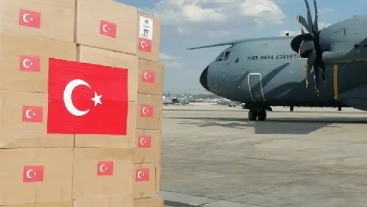 Paylaşımda, malzemelerin uçağa yüklenme anına ilişkin fotoğraflara da yer verildi.