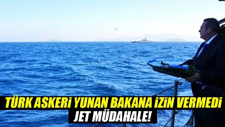 Kardak bölgesine çelenk atmak üzere hücumbot ile gelen Yunanistan Savunma Bakanı Kardak'a yaklaştırılmadı.