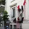 Grup ellerindeki kırmızı ve siyah boya dolu balonları elçiliğin duvarlarına attıktan sonra olay yerinden hızla uzaklaştı.