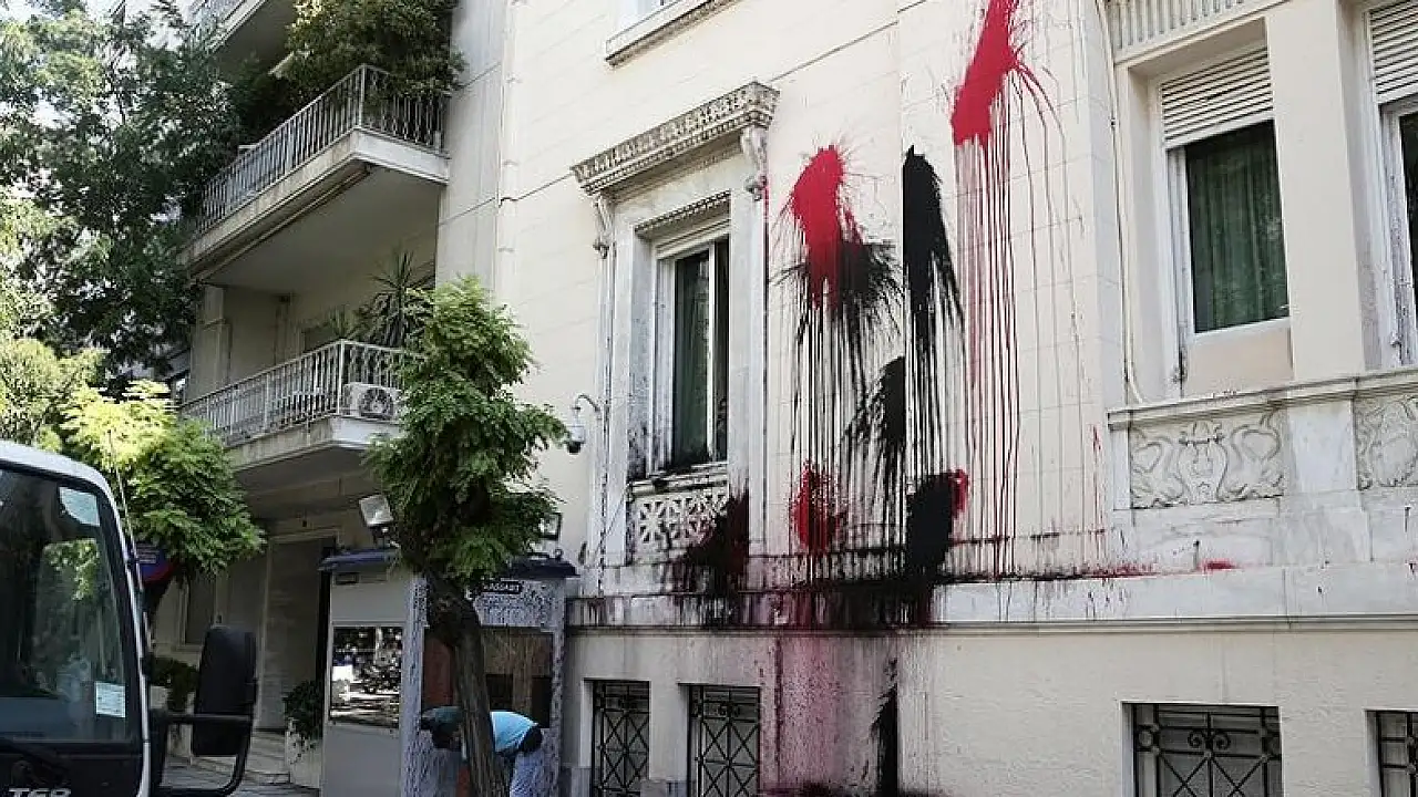 Türkiye'nin Atina Büyükelçiliği boyalı saldırıya uğradı.