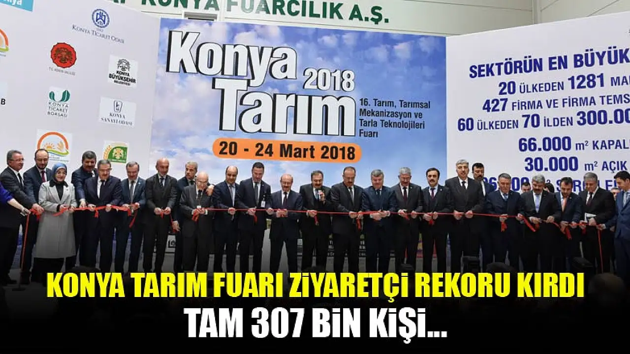 Bu yıl Konya Ticaret Odası – Tüyap Konya Uluslararası Fuar Merkezi’nde Tüyap Konya Fuarcılık A.Ş. tarafından Türk Tarım Alet ve Makineleri İmalatçıları Birliği (TARMAKBİR) iş birliğiyle on altıncısı düzenlenen, T.C. Orman ve Su İşleri Bakanı Prof. Dr. Veysel Eroğlu tarafından açılışı gerçekleştirilen ve her sene tarım profesyonellerinin merakla beklediği 16. Konya Tarım Fuarı, yine ziyaretçi sayısında rekor kırdı. Sektörün ülkemizdeki en önemli buluşması olan Konya Tarım Fuarı 307.919 rekor ziyaretçiyle yine tarım sektörünün en büyük buluşması olduğunu kanıtladı.