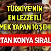 Türkiye'nin en lezzetli yemeklerinin yapıldığı gastronomi şehirleri açıklandı. İlk 10 listenin içerisinde Konya da var.