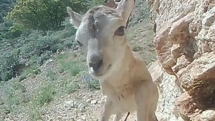 Türkiye'nin endemik türlerinden olan Anadolu yaban koyunu yavrusu, fotokapana yansıdı.