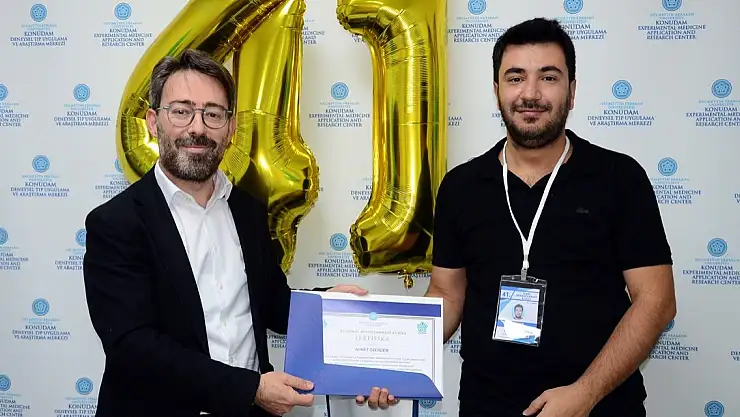 NEÜ KONÜDAM Deneysel Tıp Uygulama ve Araştırma Merkezinde düzenlenen sertifika töreninde kursiyerlere belgelerini; NEÜ Rektör Yardımcısı Prof. Dr. Bahadır Feyzioğlu, Tıp Fakültesi Dekanı Prof. Dr. Şükrü Nail Güner, Dekan Yardımcıları Prof. Dr. Mehmet Dadacı ve Prof. Dr. Ömer Faruk Akça, KONÜDAM Müdürü Prof. Dr. Gökhan Cüce ve Tıp Fakültesi Öğretim Üyesi Prof. Dr. Nedim Savacı takdim etti.