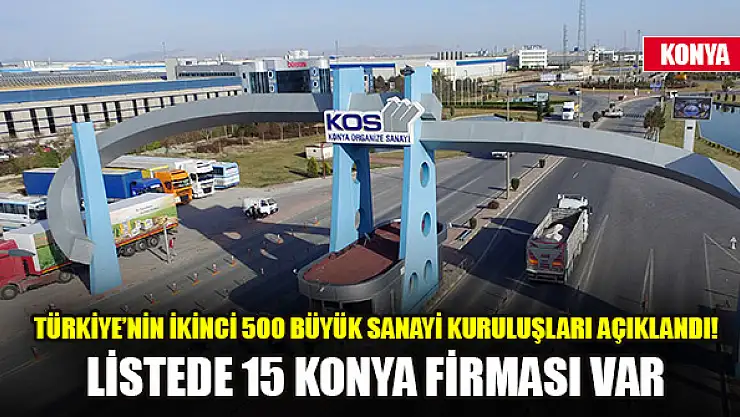 • Türkiye'nin İkinci 500 Büyük Sanayi Kuruluşları açıklandı, listede 15 Konya firması var