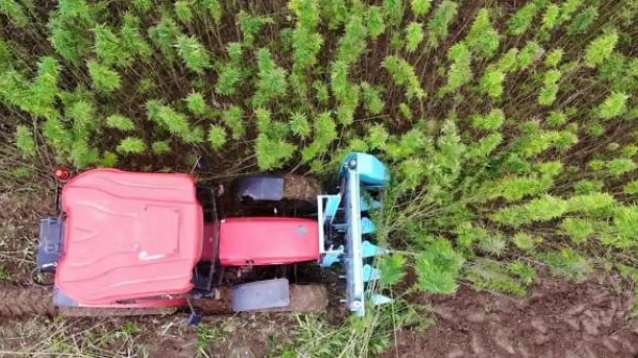 Boyları 4,5 metreye kadar ulaşan kenevirlerin hasadında makine kullanıldı.