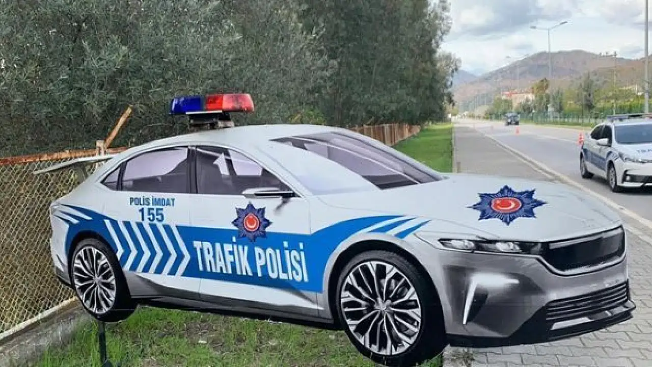 'Türkiye'nin Otomobili'nin maketi, Muğla'da sürücülerin trafik ihlali yapmasının önüne geçmek için konulan trafik polisi aracı oldu.