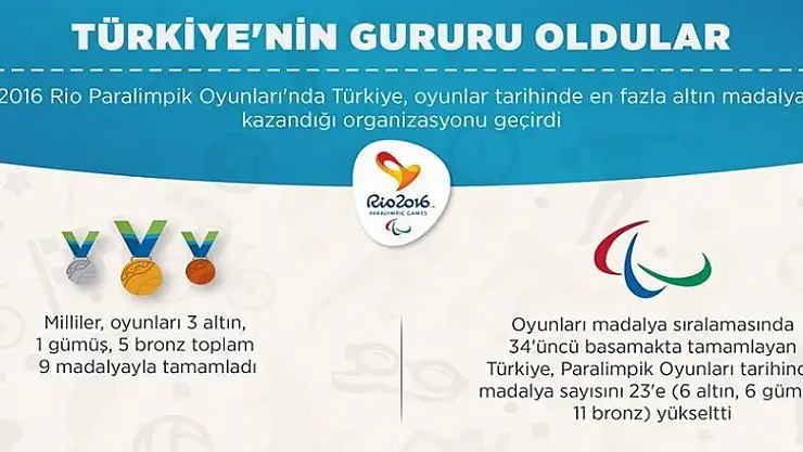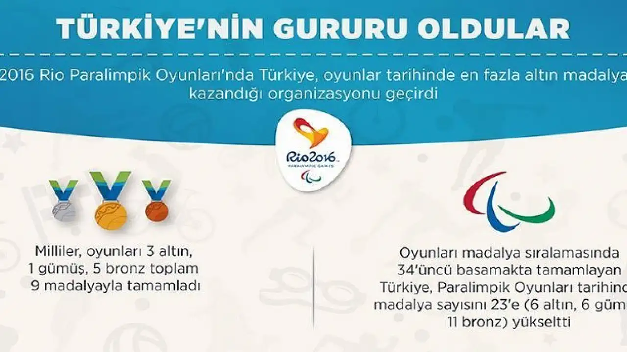 Türkiye, 2016 Rio Paralimpik Oyunları'nda kazandığı 3 altın madalya ile organizasyon tarihinin en başarılı performansını sergiledi.