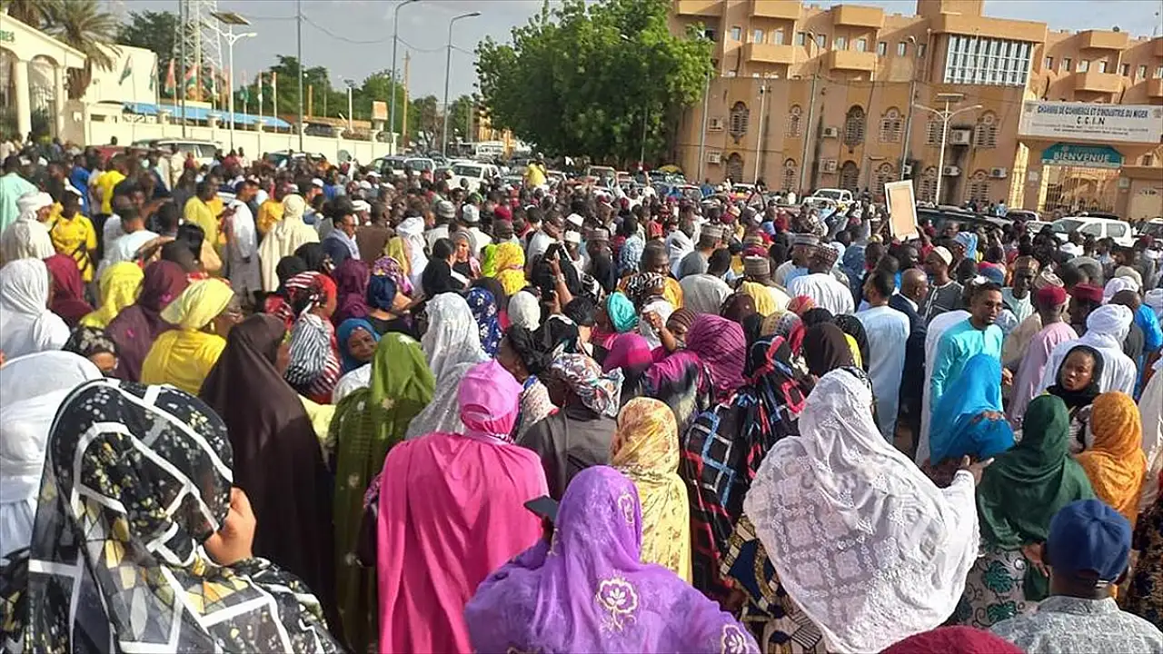 Nijer'de Cumhurbaşkanlığı Muhafız Alayı unsurları tarafından yapılan darbe girişimini protesto etmek için halk sokaklara döküldü.