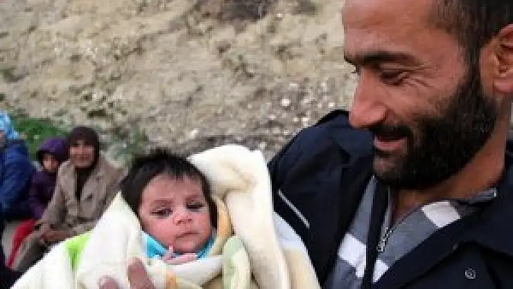 Sınır hattına gelen ailelerin yaşadıkları korku ve yorgunluk yüzlerine yansırken, Türkiye'ye alınanlar arasındaki 5 günlük Muhammed bebek göze çarpıyor.
