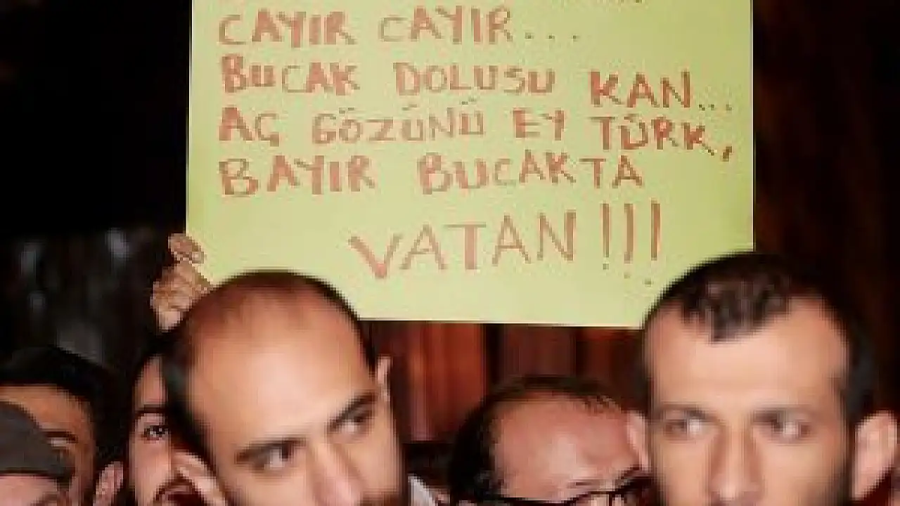 Trabzon Ülkü Ocakları Başkan Yardımcısı Erhan Özçakır, polisin geniş güvenlik önlemleri eşliğinde grup adına yaptığı açıklamada, Hatay'ın güneyindeki Bayırbucak Türkmenlerinin Rus uçaklarının ağır bombardımanı ve İran'ın binlerce milis desteğiyle Suriye ordusu tarafından yok edilmeye başlandığını söyledi.