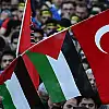 Protestors held banners reading "Jerusalem is Muslim" and waved Turkish and Palestinian flags.