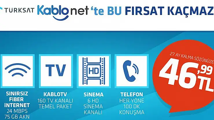 Türksat tarafından sunulan Kablo tv ile beraber Kablonet çözümü de bulunuyor. Daha hızlı bir internet deneyimi yaşamak isteyenler için ideal bir çözümü ifade eden Kablonet, 20 mbps hızında sınırsız internet paketleri sunuyor. Özellikle internet üzerinden işlem yapan firmalar için bu hızda bir internet çok daha iyi bir iş performansına sahip olmanız anlamına gelir. Ayrıca film ve videoları çok kısa sürede indirmek için de yüksek hızlı internetten yararlanabilirsiniz.