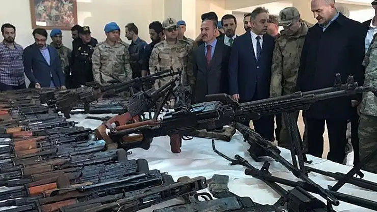 Soylu a précisé que les agents de sécurité ont retrouvé 116 fusils Kalashnikov, une mitrailleuse Dochka, cinq fusils d'artillerie, trois munitions antiaériennes, treize mitrailleuses, cinq RPG-7, sept fusils de précision, d'autres fusils, 217 grenades artisanales et 239 autres grenades.