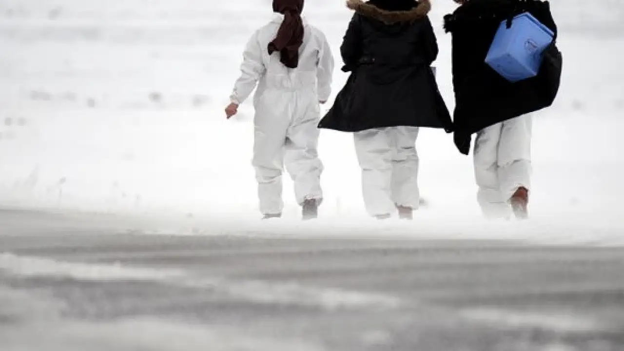 Na području Ardahana zdravstveni radnici, da bi vakcinisali stanovništvo kod kuće, zbog snijega ponekad moraju ostaviti vozila i ići pješke.