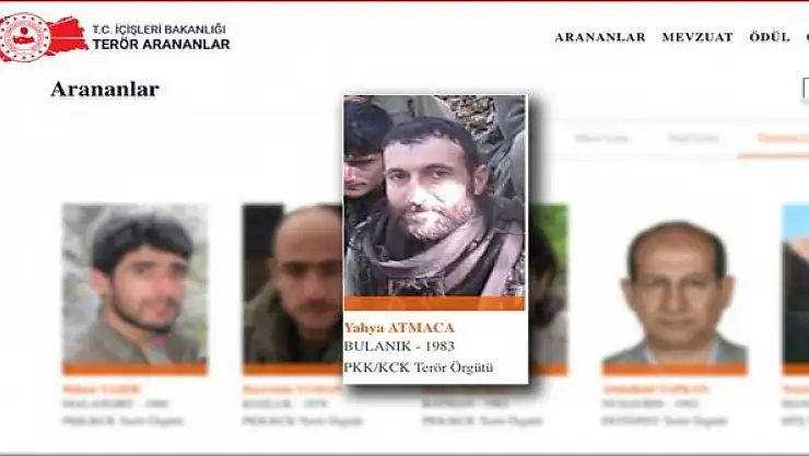 İçişleri Bakanlığı, Tunceli'de 24 Haziran'da etkisiz hale getirilen teröristlerden birinin, Terörden Arananlar Listesi'nde turuncu kategoride yer alan Yahya Atmaca olduğunun tespit edildiğini bildirdi