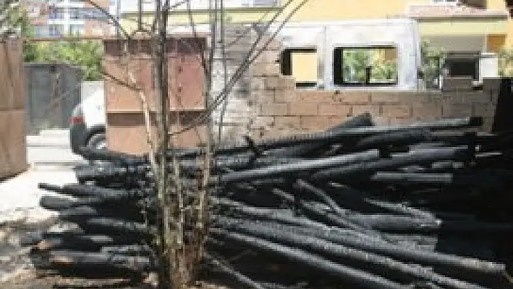Konya'da inşaat alanında bulunan odunların tutuşması sonucu çıkan yangında, sıçrayan alevler park halindeki minibüsü yaktı.