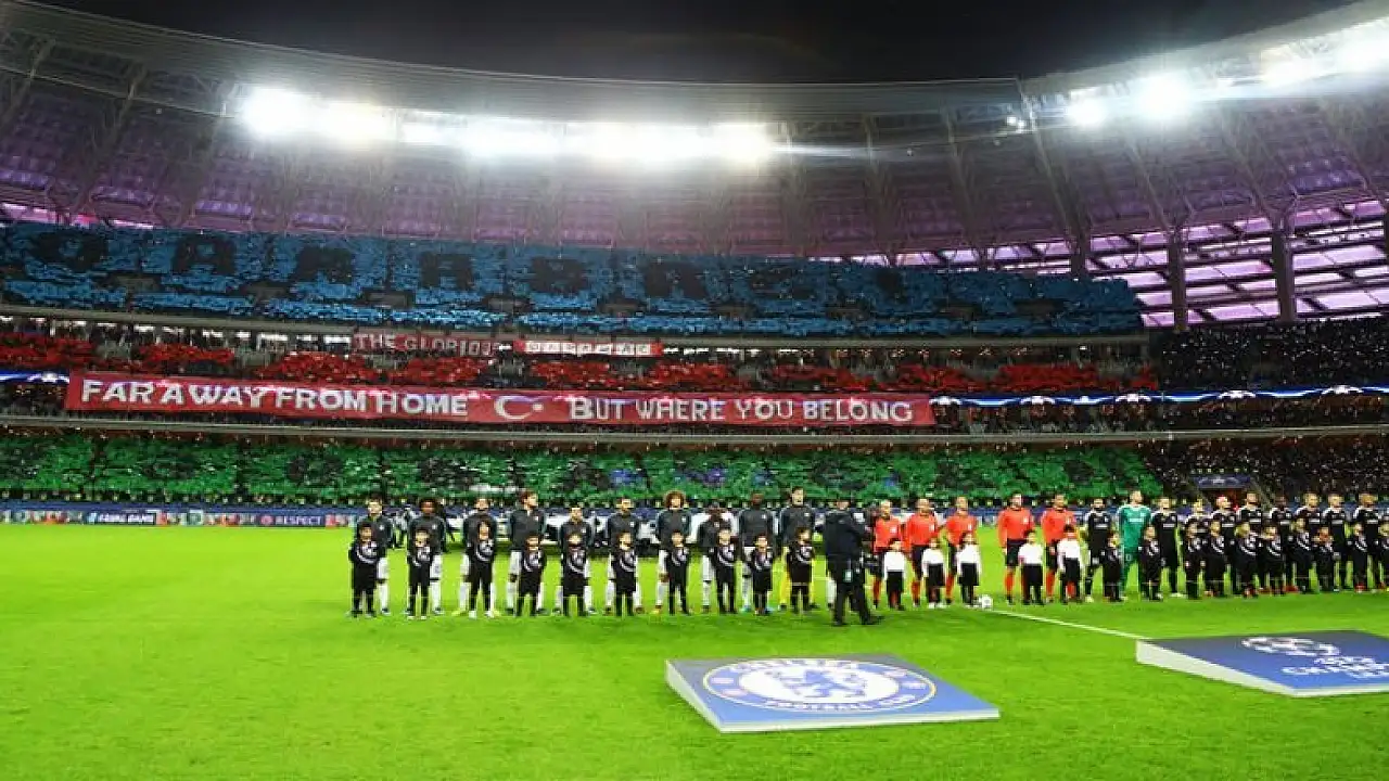 Azerbaycan'ın Şampiyonlar Ligi'ndeki temsilcisi Karabağ, bu akşam Chelsea ile karşı karşıya geldi. Karşılaşma öncesinde tribünlerdeki koreografi dikkat çekti.