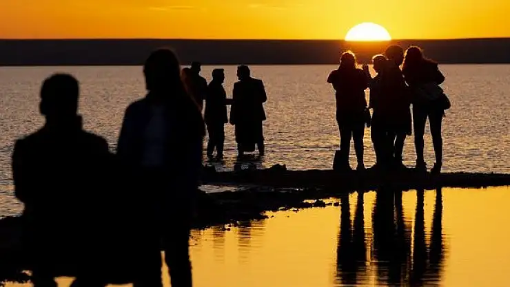 Binlerce flamingoya da ev sahipliği yapan gölde, gün batımında güzel manzaralar oluşuyor.
