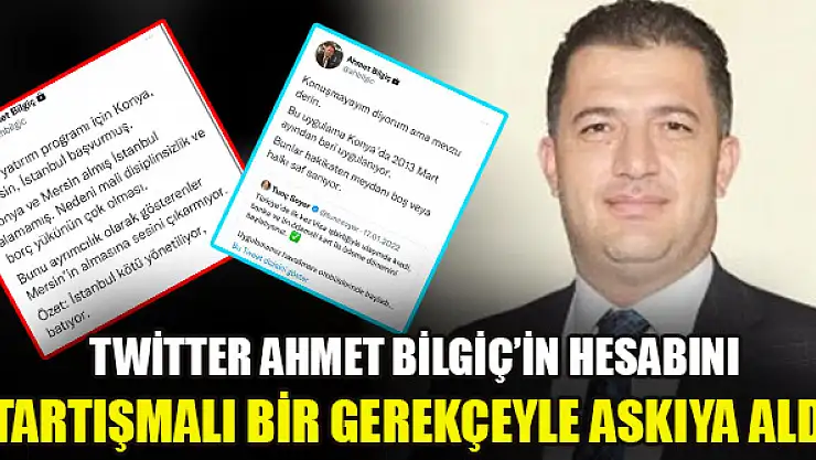 Sosyal medya platformu Twitter, Konya Büyükşehir Belediyesi Basın, Yayın ve Halkla İlişkiler Daire Başkanı Ahmet Bilgiç'in hesabını tartışmalı bir gerekçeyle askıya aldı.