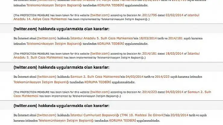 Netice itibariyle twitter yetkililerinin, bazı linklerin kaldırılmasına ilişkin mahkeme kararlarının uygulanması konusunda duyarsız kalması nedeniyle vatandaşların mağduriyetini gidermek için teknik olarak Twitter'e erişim engellendi.