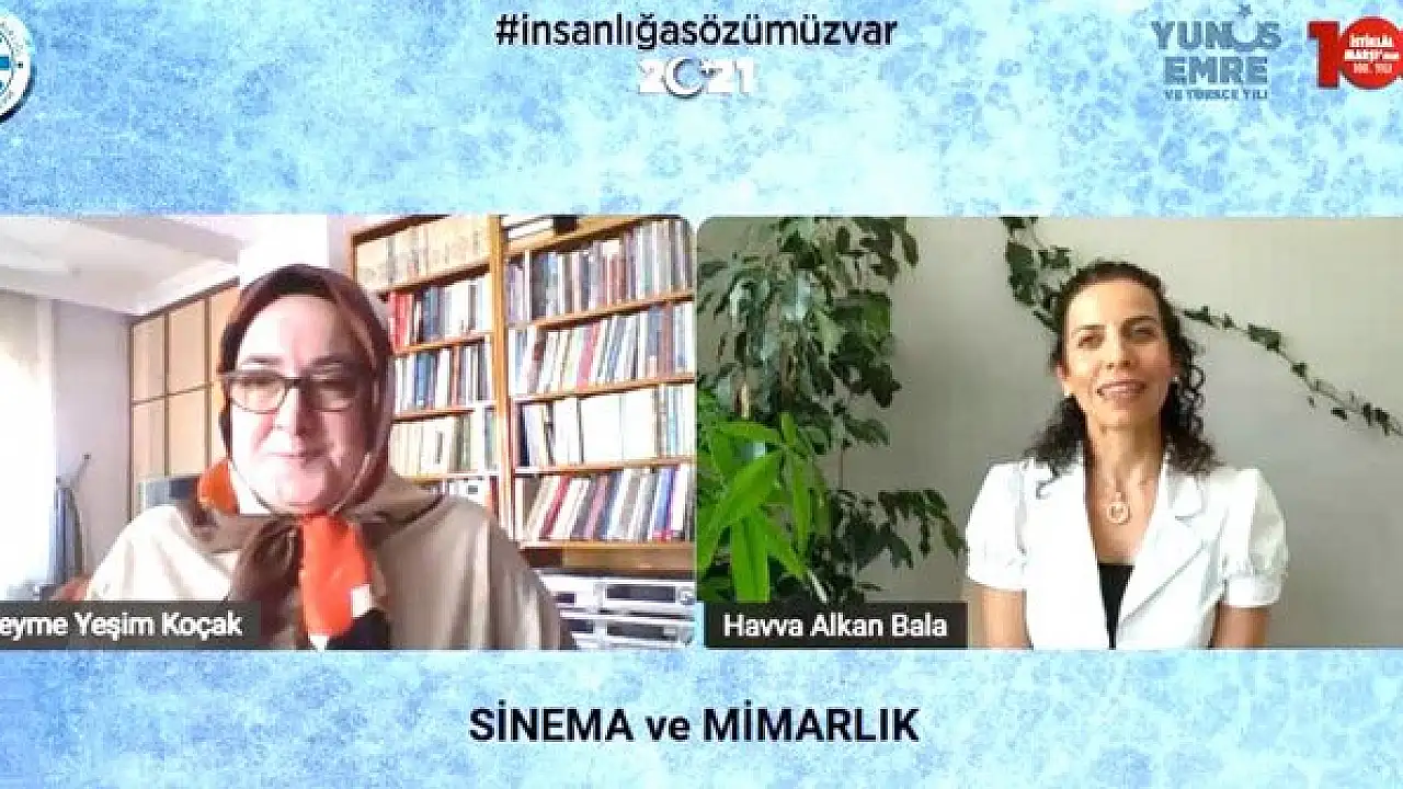 Türkiye Yazarlar Birliği Konya Şubesi etkinliklerinin 16. Haftasında Konya Büyükşehir, Karatay, Selçuklu ve Meram Belediyelerinin katkılarıyla çevrim içi düzenlenen programda 'Sinema ve Mimarlık' konuşuldu.