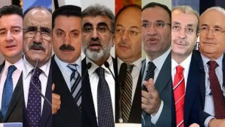 "Ali Babacan Ankara 1. Bölge 1. sıra, Beşir Atalay Van 1. sıra, Mehdi Eker İstanbul 3. Bölge 1. sıra, Binali Yıldırım İzmir 1. Bölge 1. sıra, Ömer Çelik Adana 1. sıra, Recep Akdağ Erzurum 1. sıra, Hayati Yazıcı İstanbul 2. Bölge 1. sıra, Taner Yıldız Kayseri 2. sıra, Faruk Çelik Şanlıurfa 1. sıra, Bekir Bozdağ Yozgat 1. sıra, Haluk İpek Amasya 2. sıra, Cemil Çiçek Ankara 2. Bölge 1. sıra, Nurettin Canikli Giresun 1. sıra, Mustafa Elitaş Kayseri 3. sıra, Burhan Kuzu İstanbul 2. Bölge 3. sıra, Mehmet Ali Şahin Karabük 1. sıra, Ayhan Sefer Üstün Sakarya 1. sıra, Mustafa Ataş İstanbul 1. Bölge 2. sıra, Mevlüt Çavuşoğlu Antalya 1. sıra, Bayram Özçelik Burdur 1. sıra, Hakkı Köylü Kastamonu 1. sıra, Şaban Dişli Sakarya 2. sıra, Zeyid Aslan Tokat 2. sıra."