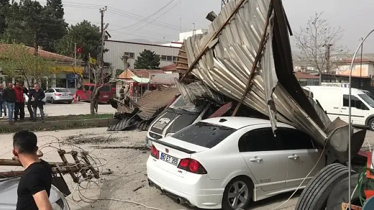 TOKAT'ta etkili olan kuvvetli rüzgar nedeniyle sanayi sitesinde bazı dükkanların çatısı uçtu. Park halindeki araçların üzerine düşen çatılar hasara neden oldu.