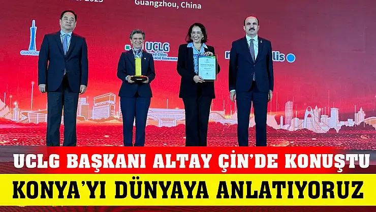 Birleşmiş Kentler ve Yerel Yönetimler Dünya Teşkilatı (UCLG) Başkanı ve Konya Büyükşehir Belediye Başkanı Uğur İbrahim Altay, UCLG ve Metropolis tarafından Çin’de düzenlenen Belediye Başkanları Küresel Forumu ve 6. Uluslararası Guangzhou Kentsel İnovasyon Ödül Töreni’ne katıldı. Çin’in Guangzhou şehrinde dünyanın birçok bölgesinden belediye başkanlarının ve yerel yöneticilerin katıldığı forumda dünya belediyelerine hitap eden Başkan Altay, Küresel Belediye Başkanları Forumunun; "Yüksek Kaliteli Kalkınma: Kentsel İnovasyon ve İş birliği" temasının başlatılan hareketin değerleri ve eylemleriyle bire bir örtüştüğünü söyledi.