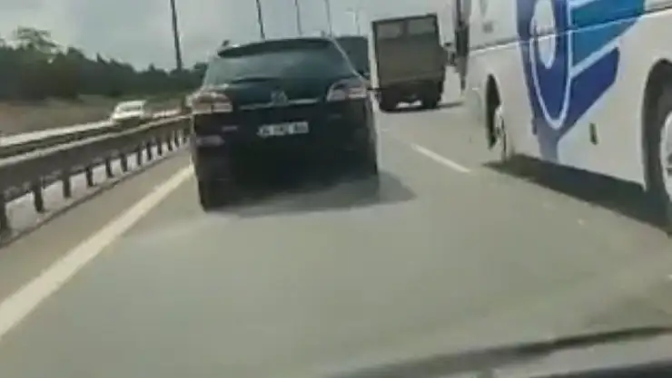 Tuzla'da cip sürücüsü, otoyolda geçiş ücreti ödememek için taktırdığı katlanır plaka sistemiyle plakasını gizledi. O anlar başka bir sürücü tarafından cep telefonu kamerasıyla kaydedildi.