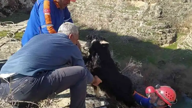 Adıyaman'da, bir uçurumda mahsur kalan 4 keçi AFAD ekiplerinin çalışmaları sonucu kurtarıldı.